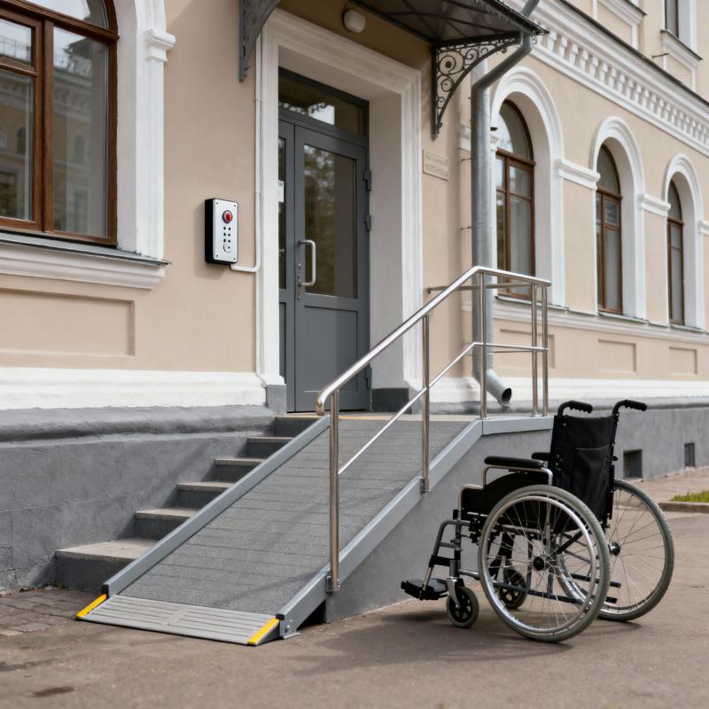 - Минимизация порогов: не более 2 см или рампы с уклоном 1:2